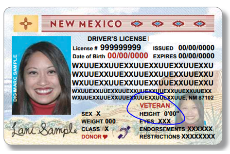 Starting in November 2012, the New Mexico MVD has provided a way for veterans to be acknowledged  on their Driver’s Licenses and ID’s.